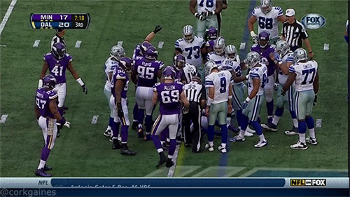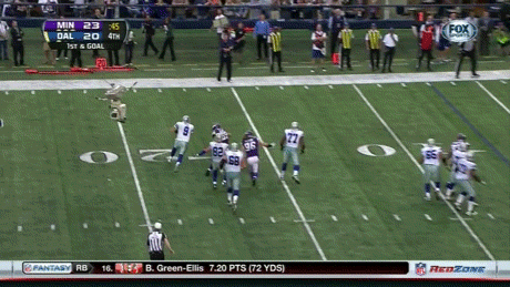 - San Diego Chargers – 1 yard from the winning TD. 3 plays. And they can’t make it. RUN THE DAMN BALL, DUDES!