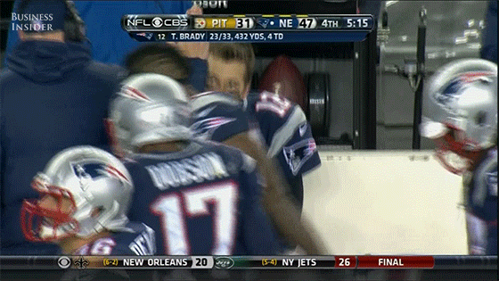 - New England spanked Pittsburgh, putting 55 points on ‘em (the most the Steelers have ever conceded). Gronk had 143 yards, Brady 432 with 4 TDs. The Pats are back, baby!