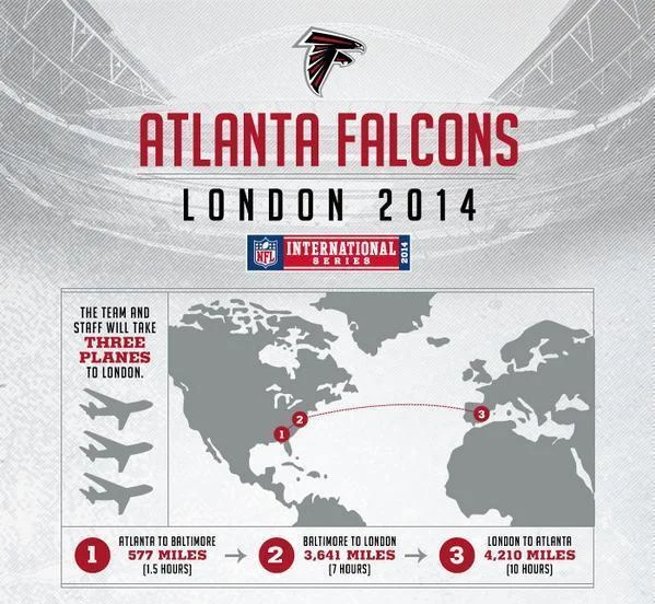By the way, if the Falcons don’t turn up in London for the game, it’s because they landed in Spain.