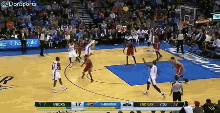 Adams runs into the paint setting up for a potential rebounds as Reggie Jackson shoots a long two. Sanders is there waiting for him, with an arm outstretched to try keep him at bay. Except that Steven Adams is always ready for the physical stuff, and runs right through it, bumping Sanders off. Sanders takes some exception, and pushes his elbow up into Adams’ face. Adams pushes him off and Sanders has another go. Bucks forward Khris Middleton breaks them up in case of any trouble. There is no sign of retaliation from Adams though as the whistle is blown. He just casually walks over to the bench and waits for the next play to start.