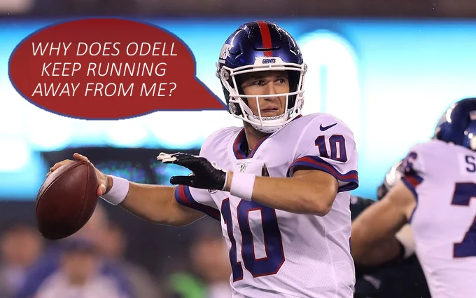 But what I really want to stress again is that the Giants only got that lone number two pick to work with. If you think they should’ve drafted Sam Darnold then that means not drafting Saquon Barkley and then you’d have Darnold struggling in an offence that, for the millionth time in a row, didn’t have a decent running back. They needed Barkley more. Eli was more likely to be serviceable in his position than Jerry Backup RB in theirs. The fact of the matter is that the G-Men were incapable of getting the rebuild done all at once. Now, there is an argument that QBs take longer to develop than running backs do so it’d have been a quicker fix to get a quarterback this year and running back next but then who’s to say there’d be a better prospect than Barkley. Have you been watching this dude? He’s awesome.