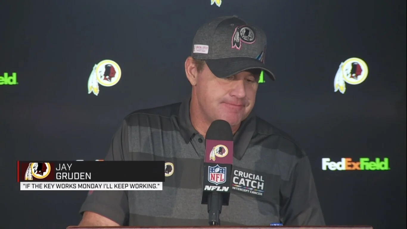 He said that. And then he was called in for a meeting with owner Dan Snyder at 5am the next morning and whether his key worked or not… they fired him. Now, an 0-5 start is hardly ideal and this team is pretty damned average. But, like, their starting quarterback is Alex Smith who might not ever play again after the injury he suffered last season and interim starter Case Keenum is currently injured and he’s far from the only one on this roster either. I fail to see how any of this is Jay Gruden’s fault. It’s not like he was doing an outstanding job but they were mud before him too and sacking him now… not gonna make a sliver of difference.