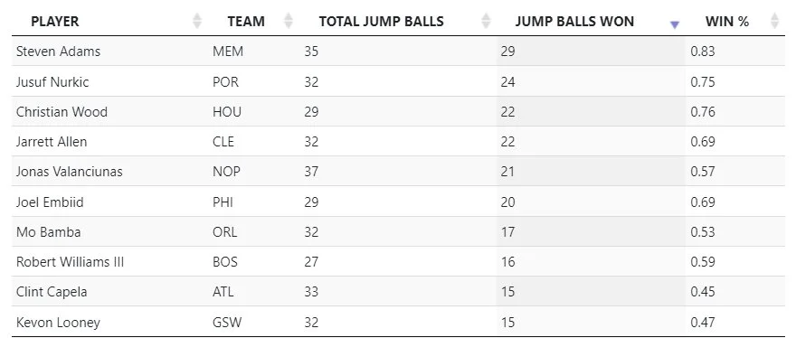 According to that piece, Adams’ will tell you that winning the jump ball is not a matter of height but a matter of reaction speed. Stacks up when you watch the clips back. He seems to take it more seriously than most for one thing. Gets set into that partial crouch nice and early and doesn’t flinch until it’s time to go. Once or twice in there he and the other dude have a false start reacting to each other but mostly it’s how you play the ref, it seems. Whatever it is, it’s working.