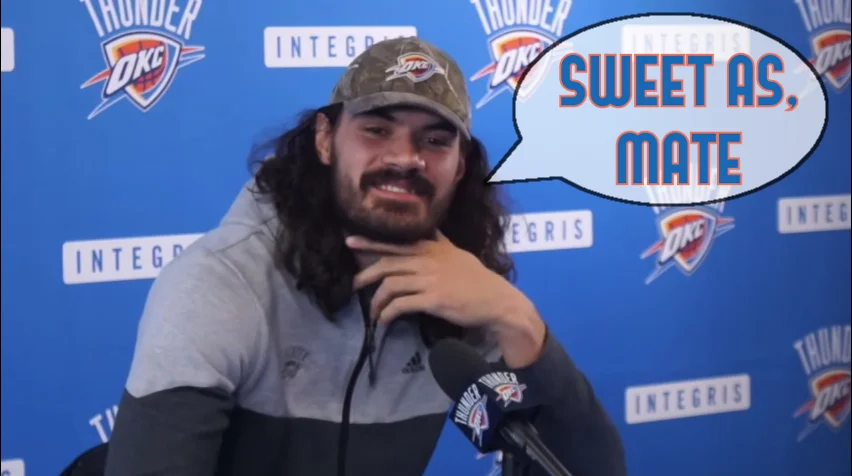 Steven Adams spent a lot of time playing second fiddle to Westbrook’s improvisations, no problem there as far as he was concerned, though there were others out there who saw an alternative and that led to Kiwi Steve having to answer a few pressing questions on the matter. Luckily answering questions in a funny, insightful, relatable kinda way is a particular strength of his – right up there with dropping suckers in heavy screens, slamming down dunks and being best friends with Enes Kanter.