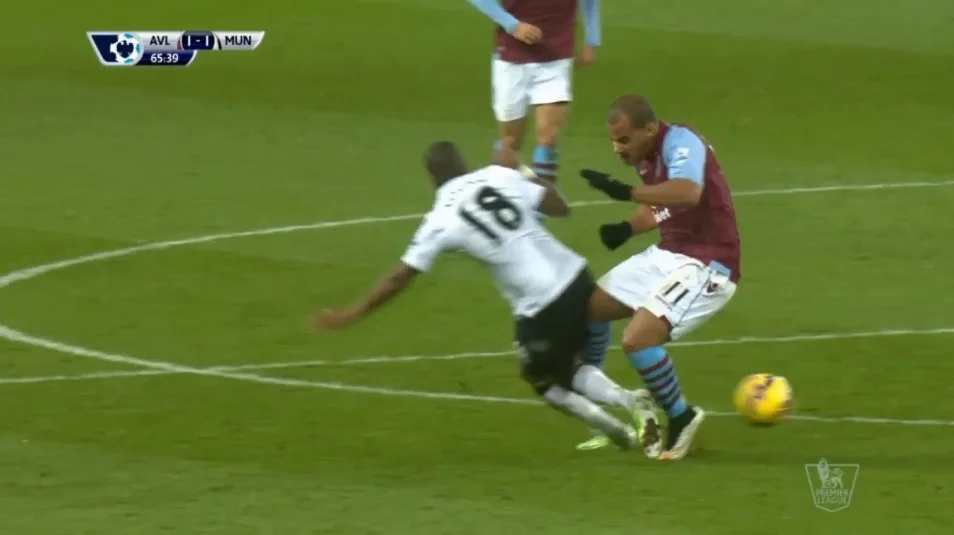 Was it a red for Agbonlahor? I thought it was harsh. But then so was the constant booing of Ashley Young. Why? Coz he left your team? I didn’t realise it was so contentious. It’s not like he went to Birmingham, he went to Man United for a lot of money – can ya blame him!? Anyway, clumsy and rough challenge, probably no intent he just didn’t realise AY was so close. Man, it looked heavy though. You could tell that Young wasn’t milking it coz he lay there perfectly still, arms folded in and head down.