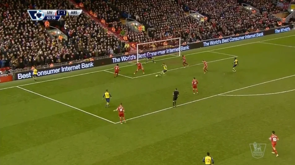 At least the first three goals were defensive errors. Arsenal gave it away carelessly close to their own box for Coutinho’s opener, two Liverpool players jumped into each other as Arsenal won three headers in the penalty area – the third headed in by Mathieu Debuchy – for an equaliser and then nobody bothering to mark Olivier Giroud, admittedly through a brilliant build up as Giroud and Cazorla linked up.
