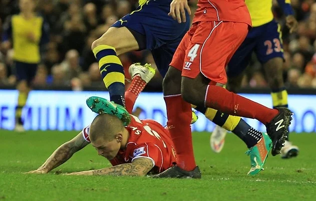 No Super Mario for Pool (suspended for an instagram post - Why Always Him?), they started with the same front three as against Man United. But they did bring two forwards off the bench, Rickie Lambert and Fabio Borini. Borini got himself sent off late for raking Sanzi Cazorla’s chest, leading to this unusual case of #FreeTheNipple.