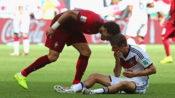 Pepe (Portugal) – What a dick. It doesn’t matter if you though the guy was milking it (he wasn’t – he didn’t even appeal!), you can’t get all in his face and headbutt him. Especially with your team 2 goals down already. That’s what we in the business call self destructing.