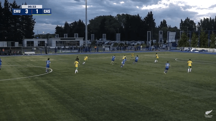 Oh yeah and Garbhan Coughlan started this game with 9 goals atop the Golden Boot charts. Gianni Bouzoukis was second with 7 goals, then Oli Colloty and Jesse Randall with 6 each. That was all before this final round (no spoilers yet, amigo). Coughlan wasted no time in blasting a shot slightly wide of the near post within the first minute of action. And yet... it was Chch who settled into the better action, lots of movement on and off the ball in the attacking third. Eddie Wilkinson heavily involved with one tasty cross that was defended and then a stinging shot that was saved. Matt Todd-Smith had one blocked on the edge of the area. CT’s centre-backs Andrew Storer and Tom Schwarz already way more involved than would have been comfortable with.