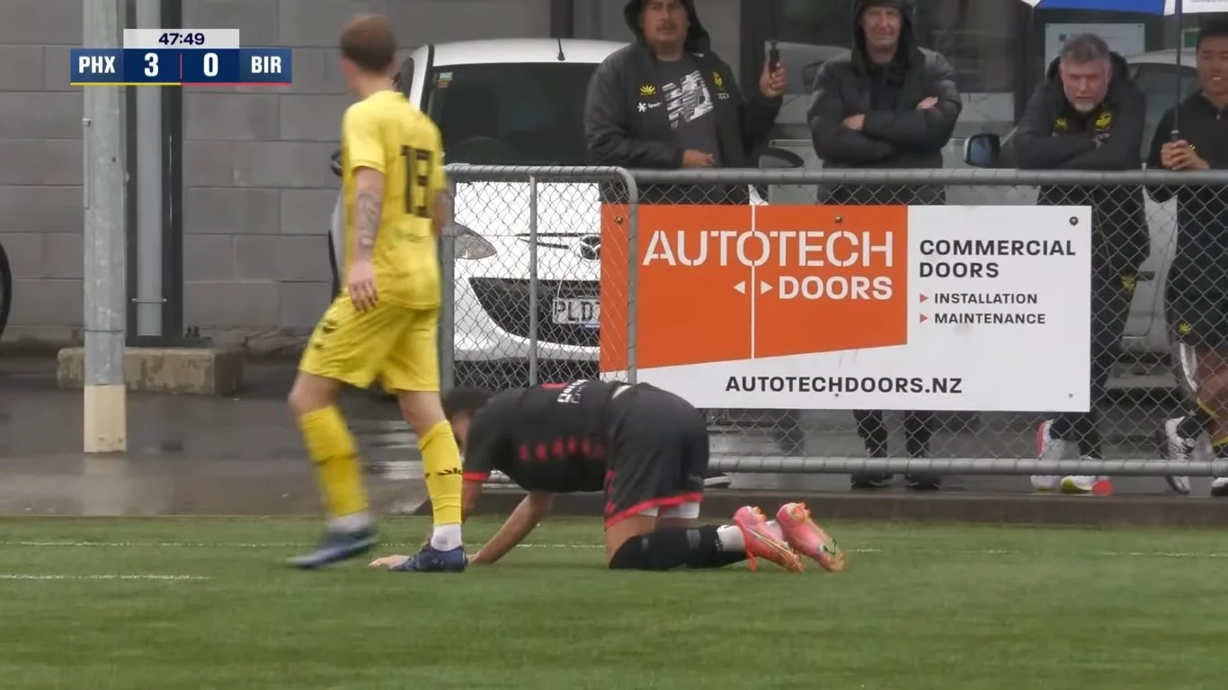 A Birko corner kick caused some trouble, with Bidois reaching out to block a driven shot from Hobson. Those set pieces were the best bets for Birkenhead who weren’t getting much joy in open play. The possession stats improved after Rufer’s presence disappeared (also helped by Dan McKay spending a few mins on the sideline getting a blood nose patched up). However the bulk of the chances were coming at the other end and 37 minutes into this thing the WeeNix finally put one away. Sam Sutton down the line to Riley Bidois. Yan Sasse dragged a defender with a run across goal allowing Biddy to slide across for Oskar van Hattum. OVH side-footed home for the opener.