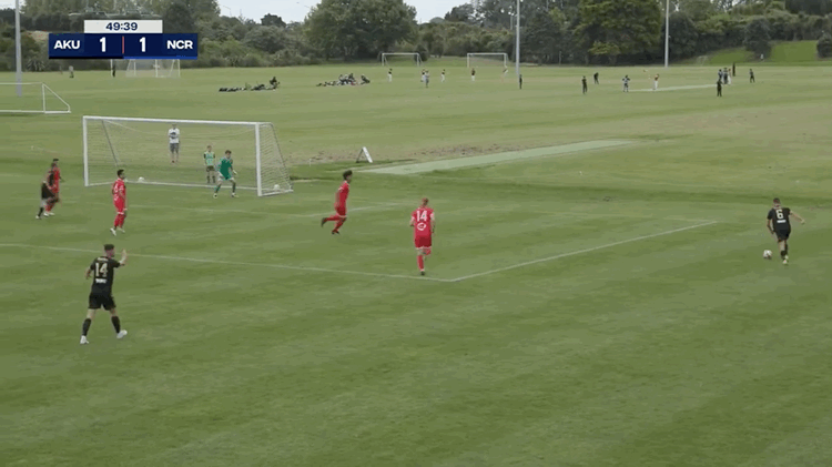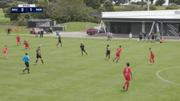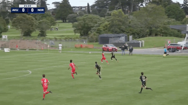 Yeah nah... a few minutes later Auckland United scored instead. It began with a long ball down the line from Reggie Murati to Nicolas Zambrano. His low cross was partially cut out by Fetuao Belched but it fell back for Oliver Middleton who struck that thing on the run to make it 1-0 to AUFC after 21 minutes. This was a game that needed a goal. Now it had a goal.