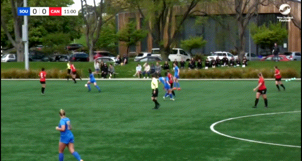 There was no need to change anything for Southern United so they didn’t. Identical XI from the 1-0 win away to Wellington United. Kendrah Smith may be an Aucklander but she played for Canterbury Utd last year, mostly as a central defender. She’s been a midfielder for Southern and one of the very best in the competition so she may have had a chip on her shoulder for this one. Several changes for the Cantabs in contrast: Una Foyle reclaimed her usual spot in goal after Maddie Iro had performed admirably in her absence, while Ellena Firth retuned at CB and Anna McPhie in midfield, plus there was a first start for capped Footy Fern Aimee Phillips. Lisa Evans and Chloe Bellamy dropped to the bench.