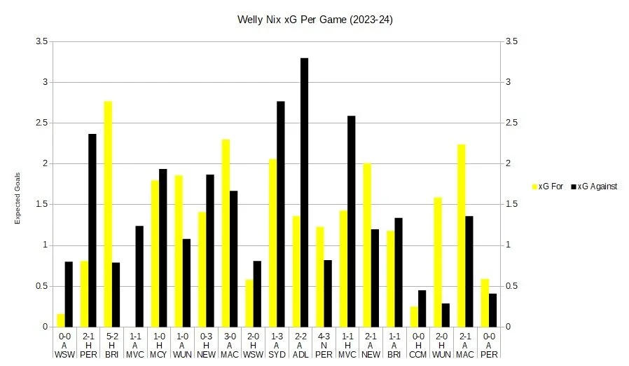 In the same way as the Perth away game was a satisfied point, so was the Central Coast homer on Waitangi Day. Both were mutually acceptable goalless draws. Those being two of the three lowest xGA tallies that the Nix have experienced all season... but at the cost of the third and fourth worst xG tallies for themselves. The other xGA match in the same ballpark was the 2-0 win against Western United straight after the CCM one. But then we know that they’ve been without key players this month so adjustments had to be made. Really, that’s the defining factor. They’ve taken away from their attack to sure up the defence at a time when they’ve been short-handed.