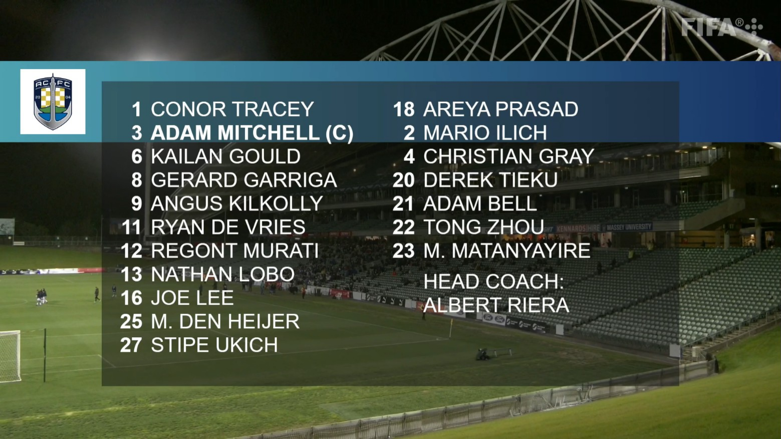They’re also both extremely good defensively - Coastal Spirit were the only other National League team to concede fewer than a goal per game during the regional leagues. RDV curled a chance slightly high as Auckland City kept moving the ball. Luke Tongue had a first-time shot on target up the other end. Chances were there but they were scarce so therefore the final remained scoreless at the break.
