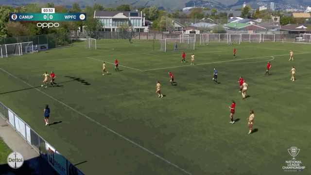 That previous game was played in torrential rain but Christchurch served up a beauty for this Saturday arvo event. And it began exactly how you’d expect with the WeeNix working the ball around assuredly... leading to a very early goal when Maisy McDonald got around the left edge and cut back for Cleall-Harding. Left with too much room to shoot, she whalloped the ball off the crossbar and down, narrowly crossing the line. It coulda been two in a hurry when O’Brien drew a save after De Wit’s switch. Bartlett also hustled a turnover around halfway and sent ICL running through but she couldn’t score 1v1 past Foote. Very bright start from the WeeNix.