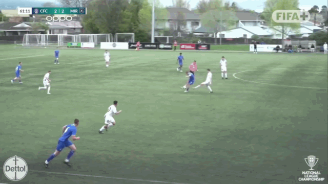 The second half belonged pretty convincingly to Christchurch United. It only took them five minutes to find another equaliser and those sneaky wingbacks were to thank once more. OVR sent in a cross. Miramar only cleared it as far as Tollervey who flipped it across to Grover pushing high. RG gave it a nudge and there it was. Second of the day for that man. And it only got trickier for Miramar when Jackson Cole and Joel Stevens were subbed on. Stevens is the MNL icon there but actually it was 19yo Cole who sparked the goal that put the Rams ahead. His sharp pass out wide sent Godden dashing away. Godden fed Shogo Osawa angling a run across the defensive line. And that man megged the keeper for 3-2.