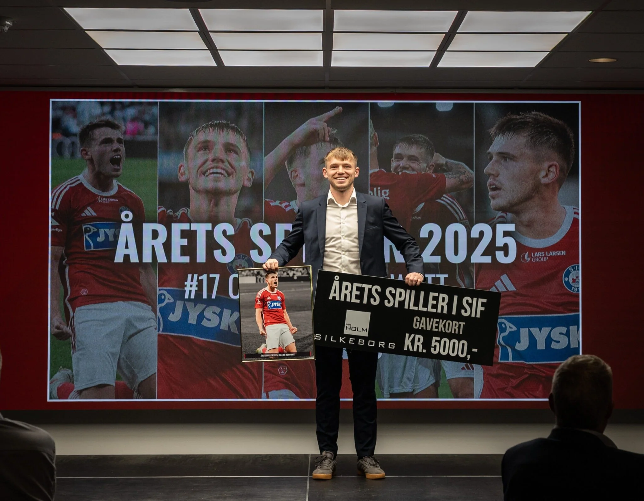 Silkeborg IF: “As is tradition, the SIF Player of the Year was named at the big Christmas party for sponsors, volunteers, and others at JYSK park. And on Tuesday evening it was revealed that Callum McCowatt won the big honour. A lot of different SIF players received votes, and it was Tonni Adamsen and Nicolai Larsen who finished second and third respectively. Three votes separated Adamsen and Larsen… but Callum McCowatt won a landslide victory after securing well over half of all the votes for his many great performances in 2025! In addition to the honour, Callum McCowatt received a gift certificate of 5,000 DKK for Mr. Silkeborg. Congratulations on the title, Callum – and thank you to all of you who voted.”