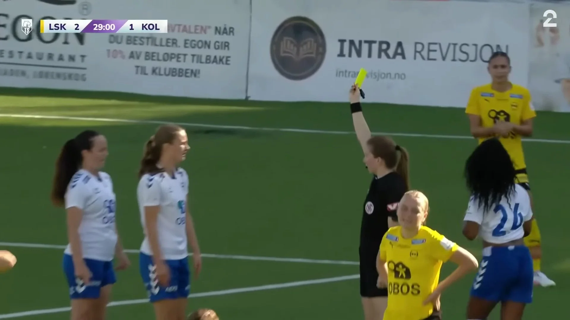 And yet, in defiance of all reputations, Kolbotn staged a magnificent comeback to be leading 3-2 at half-time. The first was touched home by Aida Berg on the end of a corner kick on 15’. Hand then went close to an equaliser as she chopped past her marker on the edge of the area and fired a shot that the keeper managed to touch onto the post at full stretch. Next it was time for Liv Chance to get into the action... by dragging back an attacker and copping a voluntary yellow card. Fair enough, do what you’ve gotta do.