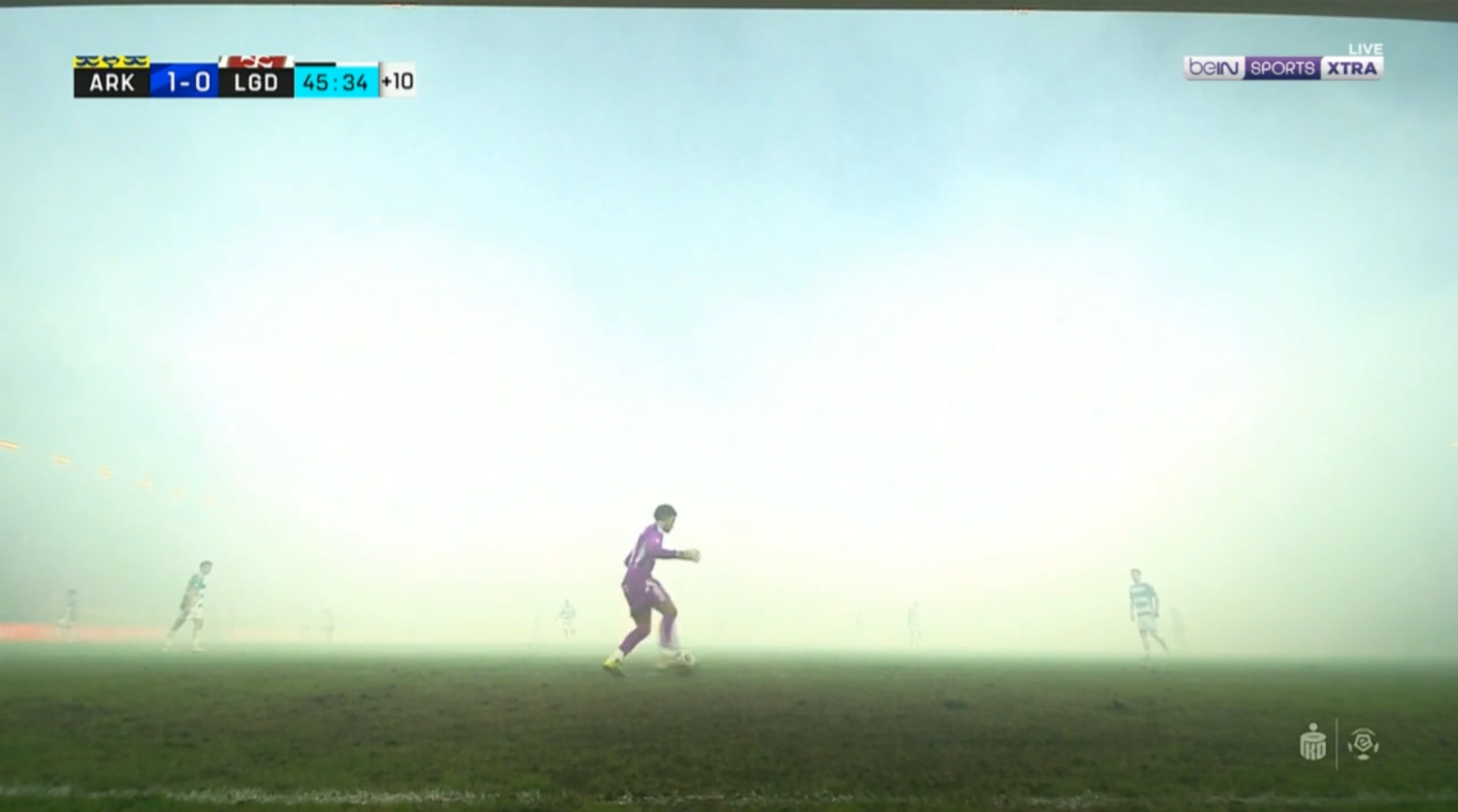 He’s already had a few ‘Welcome To Polish Football’ moments but Alex Paulsen got another one on the weekend playing away against Arka Gdynia in the Tricity Derby. The reason he’s clouded in smoke there, and also the reason why there was ten minutes of injury time in the first half, was because the respective ultras decided to have a fireworks battle mid-game. Pretty normal behaviour for this derby where pyrotechnics seem to occur every time they meet. You could hear them popping on the broadcast and soon enough the game had to be postponed after smoke drifted down to the pitch and made it impossible for the players. They left the field while it cleared, then they returned and the fireworks started up again and they had to leave the field for a second time. Thankfully that was the end of it.
