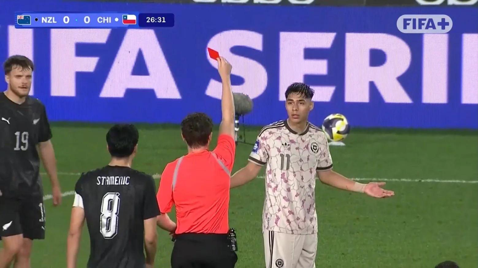 Turns out all it required to break the cycle was a cheeky serving of good luck. Like, oh dunno, how about a first half red card while the game’s still scoreless? Sure, that’ll do it. But there are red cards that happen out of nowhere (shout out VAR) and there are red cards that feel like an extension of the flow of the game. Darío Osorio was sent off for Chile against New Zealand after getting two yellows in a short space of time, the second of those being a deliberate bit of obstruction to stop an attack after McCowatt won the ball near halfway and Barbarouses tried to counter. The All Whites were already on top of the game, having had a Tyler Bindon headed goal disallowed for offside, and the red card came as a direct consequence of that pressure.