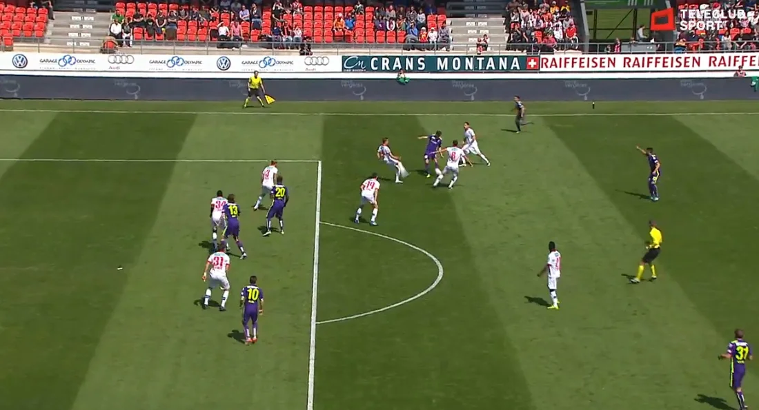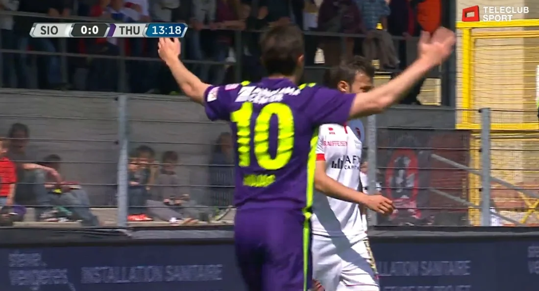 Here we go, another Thun game and shout out to Frodo Rojas in the starting line-up again, out on the left wing. Although their trip to Sion almost got off to a disastrous start as Daniel Follonier ripped one off the post in the fourth minute. About ten minutes later Marco had the ball in the net. A deflected cross looped into the box and over the keeper, leaving Rojas open at the far post and his header was nothing but a tap-in. Except that he was offside.