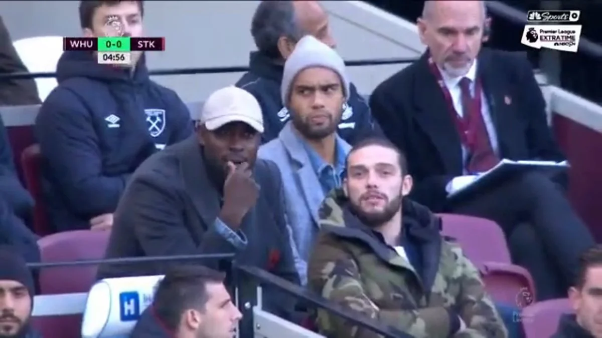 None of this stopped Winnie from supporting the lads, here he was sitting with Carlton Cole and Andy Carroll – Carroll decked in camouflage after a scary run in with a few armed muggers earlier in the week.
