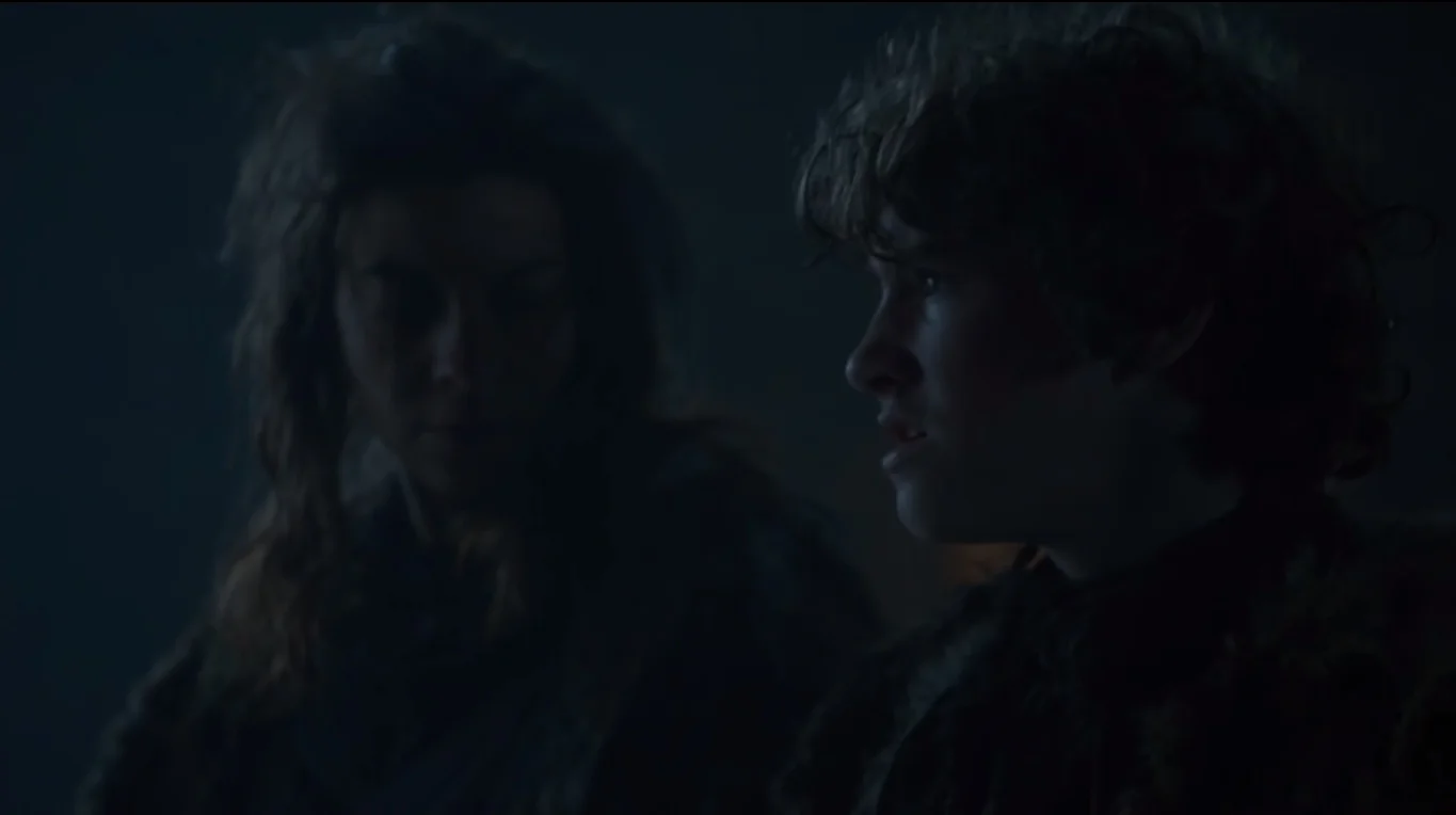 God, I love those flashback scenes though. This one I don’t think they did as well as the last one, Ned Stark looked like a kid and the tension wasn’t really there before the battle so the fight itself didn’t feel so desperate. Meera and Jojen’s daddy was there though, lucky for that or else none of those gifted kiddies woulda been born at all. By the dates, Robb would be born but he never had no greenseeing visions. Jon might have been born too, now that you mention it. Nudge nudge, wink wink.